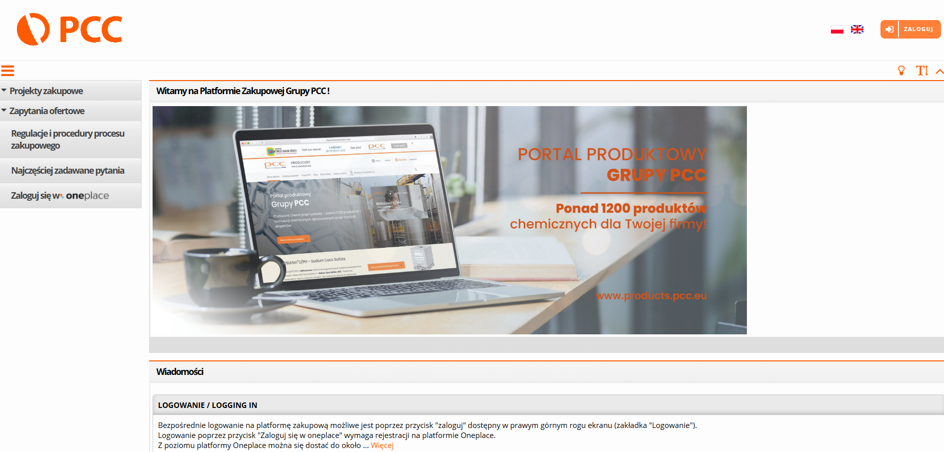 Alle Einkäufe, die mit der Umsetzung des Projekts „Innovative Produktionsanlage für hochreine Monochloressigsäure (U-P MCAA)” verbunden sind, werden über das Verkaufsportal PCC Rokita abgewickelt.